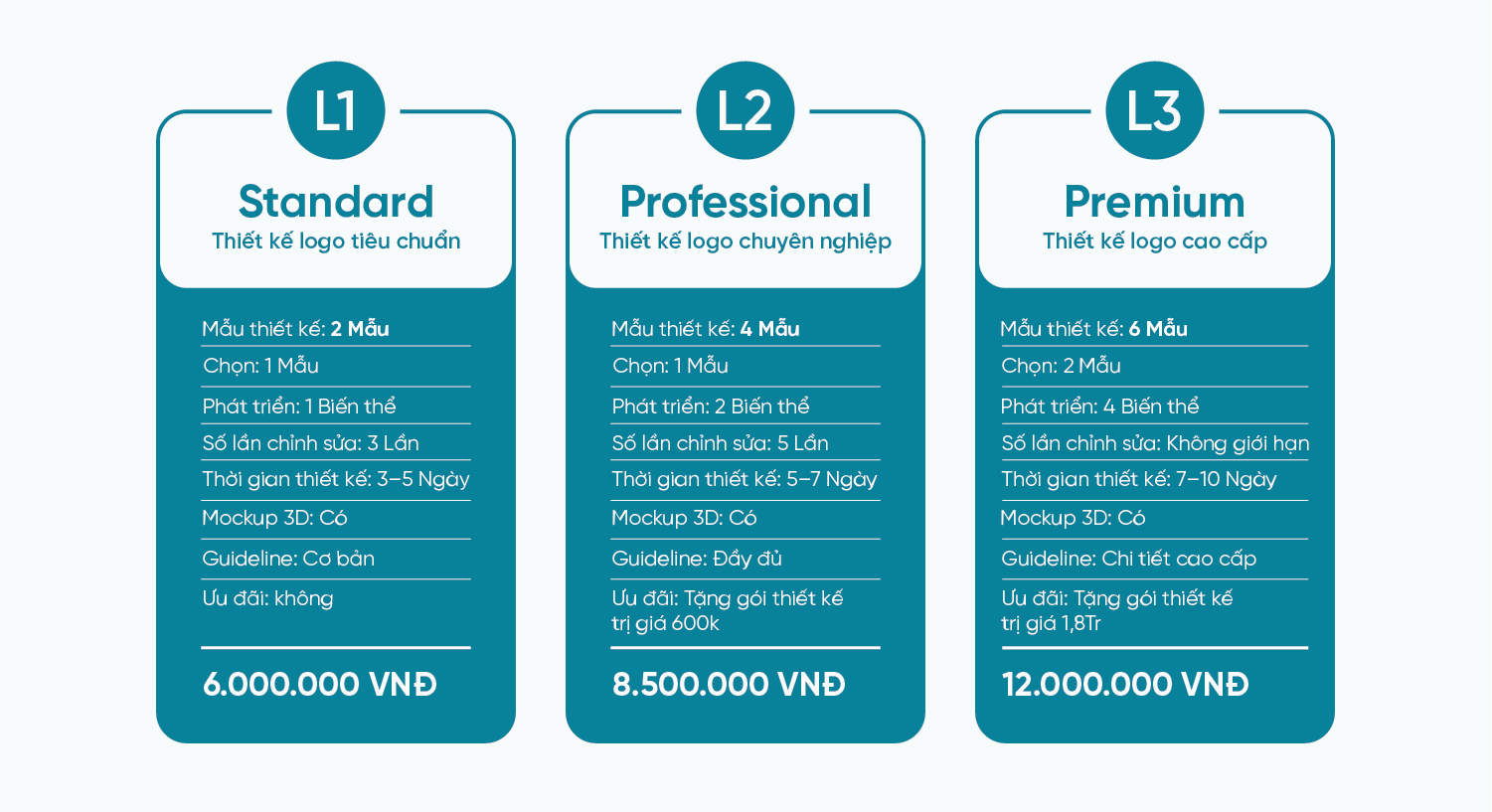 Số mẫu thiết kế được đề xuất trong moodboard sẽ tương ứng với gói dịch vụ sử dụng. Khách hàng chọn phương án logo phù hợp với thương hiệu gửi lại để Guru Design tiếp tục phát triển biến thể. Thời gian thiết kế cũng như số lần chỉnh sửa có sự khác nhau giữa các gói dịch vụ.