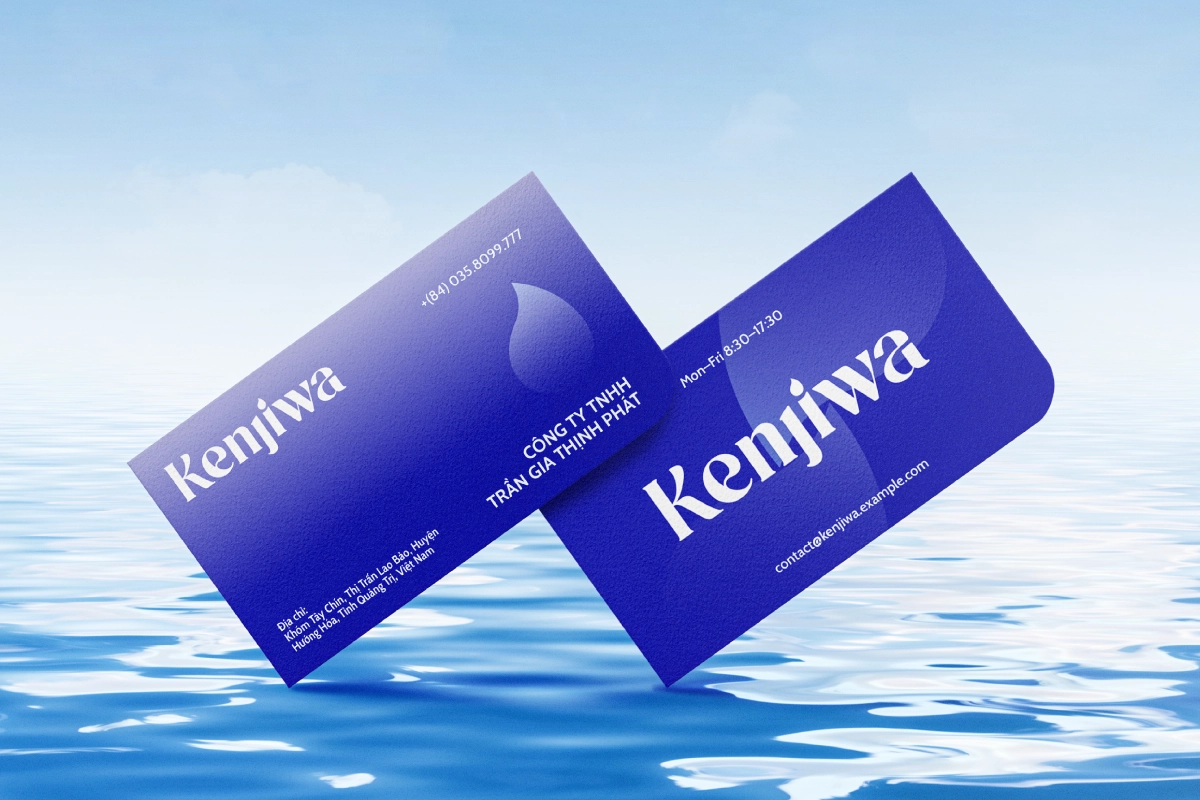 Logo Kenjiwa được typo với nhịp điệu uyển chuyển như dòng nước, với điểm nhấn rõ ở giọt nước trong chữ “i”.