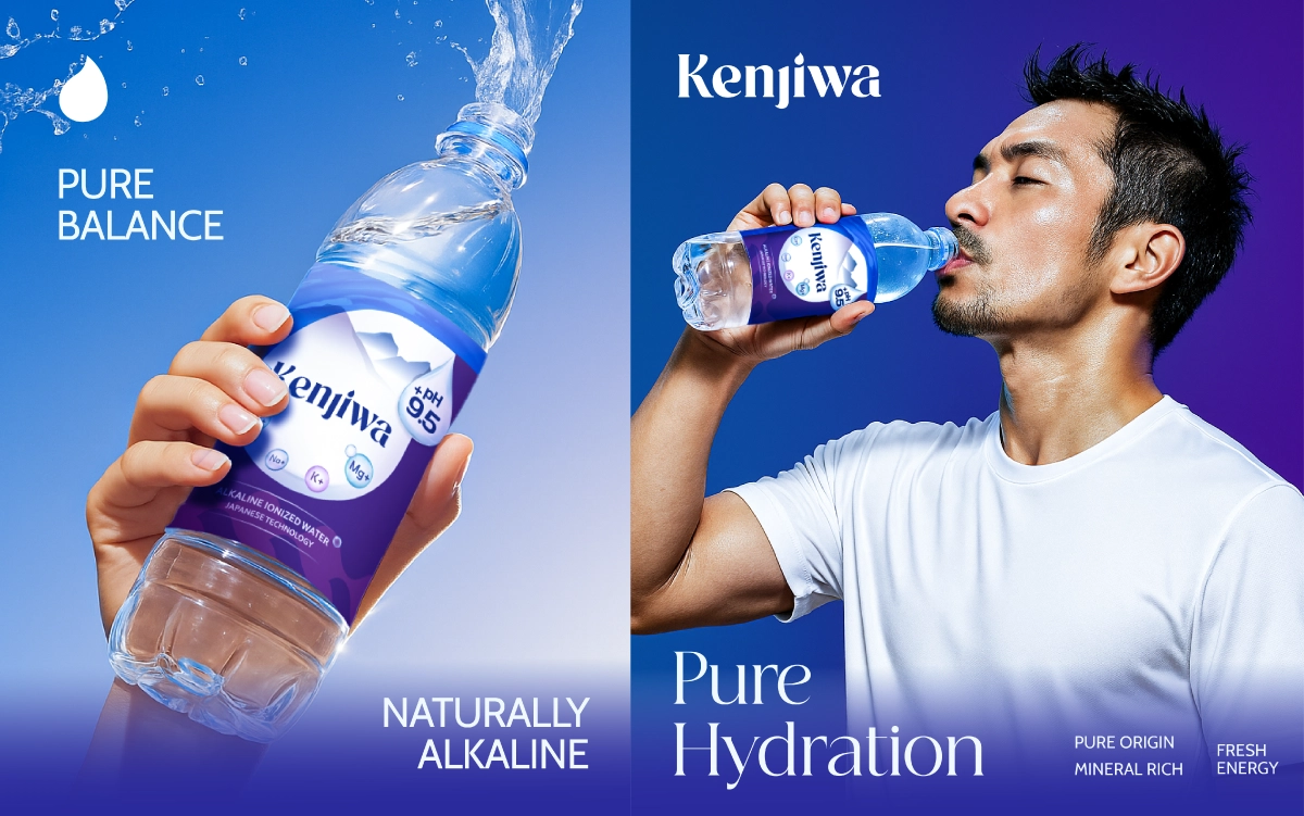 Trong thị trường nước uống cạnh tranh khốc liệt, Kenjiwa cần một hình ảnh vừa khoa học, uy tín, vừa đủ cảm xúc để tạo kết nối với người tiêu dùng.